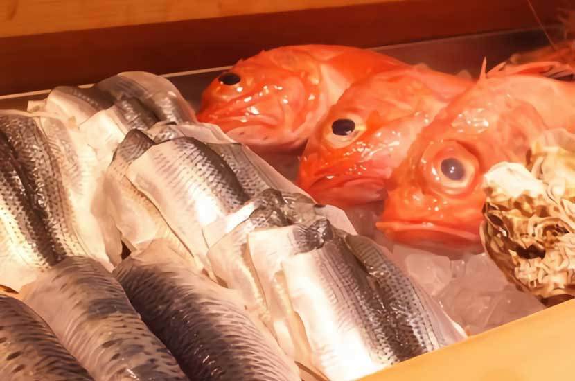 カウンタ―のネタケースには、毎朝豊洲から仕入れた旬の鮮魚を並べております。お造り・寿司、焼き魚・煮魚、脂が乗ったその時期にいちばん美味しいお魚をお召上がりください。お酒も地酒や日本全国から厳選した日本酒など多彩にご用意。料理に合うお薦めの銘柄などお気軽にお尋ねください。皆様のご来店をお待ちしております。